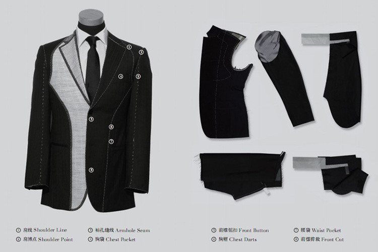 “全量身定制BESPOKE”是高级的手工定制西服制作方式,从选料、量身、裁剪、试穿、缝制、细部修整,全都是由专业人士负责,制作西服的每一道工序必须是由经验数十年以上的老师傅亲自手工制作完成,而且每一套西服都是量身定制,然后单独制版,经过繁复的试穿、反覆的修改之后,才会将成品交到顾客的手上。